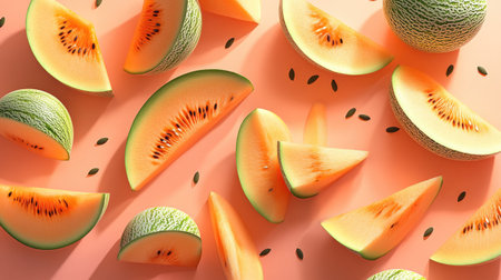 Juicy cantaloupe sits against a soft pastel background, revealing its sweet orange flesh and vibrant seeds, perfect for summertime meals and snacks.
