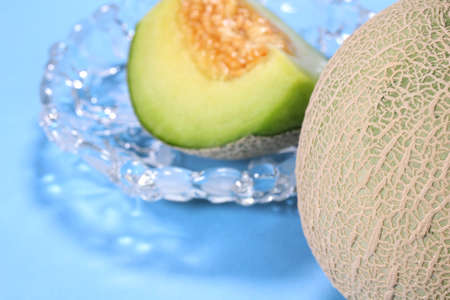 Muskmelon close up on blue background