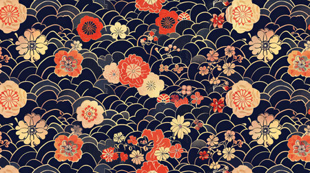 A Japanese wave pattern Asian art seamless design, Ai generated image