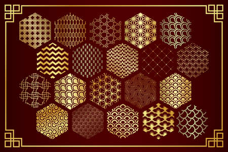 Chinese new year design elements collection. Ornamental hexagon decorations ..