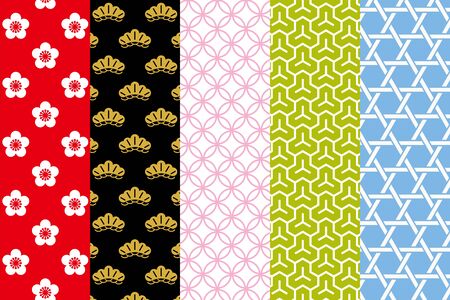 Set of 35 seamless traditional Japanese patterns. Geometric oriental background pattern. Colorful vector illustration.