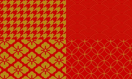Golden and red Japanese pattern houndstooth check, shark komon, hanabishi, cloisonne