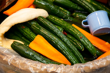 Korean fermented food, cucumber pickles or kimchi