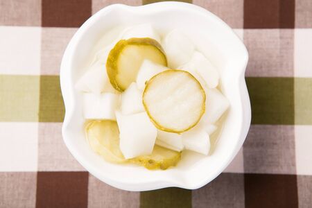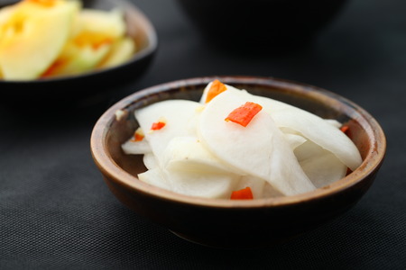 Korean food Pickled Radish Slices in Light Brine