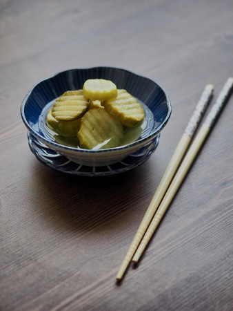 side dish Cucumber pickle and chopsticks
