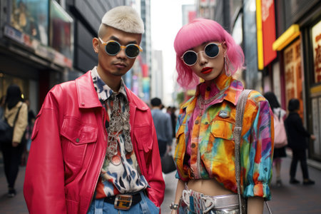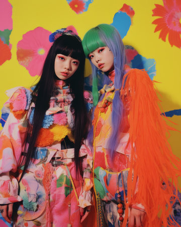 An AI generated illustration of Harajuku girls in vibrant clothes in Tokyo