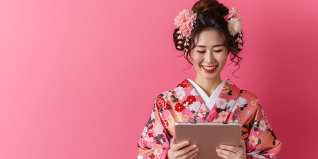 Portrait of a beautiful young Asian woman in kimono.