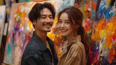 Asian couple having quality time together at the art house.