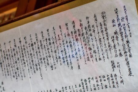 Itsukushima, Japan - January 09, 2020: Japanese text in the Daishoin Buddhist temple