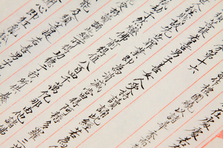 Closeup of a Old and Opened Asian Calligraphy Book