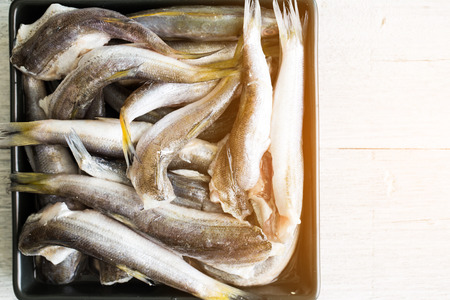 Salted Fish Made from Sun Dried Swordfish or Fish belt. Ikan Asin Layur on Bamboo Tray