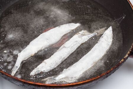 Catch on winter fishing. A close up of the fishes smelt. Isolated on white.