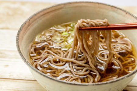 Japanese buckwheat noodles in hot soup