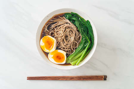 ramen noodles with egg and vegetable - vegan or vegetarian food style