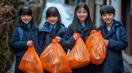 Generative AI Image of Japanese Boy Students Wearing Uniform Walking to School