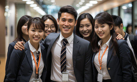 A diverse group of confident students in uniform stand together. showcasing teamwork and unity. Perfect for education. business. and success themes.
