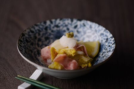 Steamed Chinese cabbage and bacon with yuzu pepper