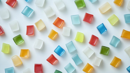 A vibrant assortment of colorful transparent gel cubes scattered across a light surface, showcasing a playful and artistic arrangement perfect for creative projects.