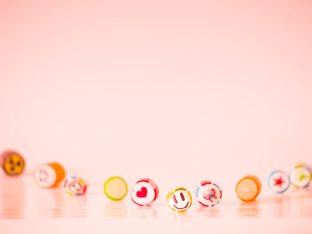 Multicolored candies on a pink background.