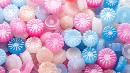 This image features vibrant and colorful candy shaped like roses, beautifully arranged on a soft pink background, perfect for sweet treat inspiration.