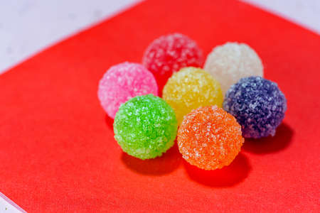 Colorful jelly candy in a white box. Selective focus.