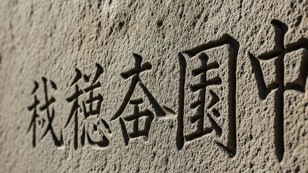 traditional Chinese calligraphy on stone surface, closeup of photo