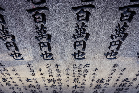 Detail of a Japanese character embossed on a stone