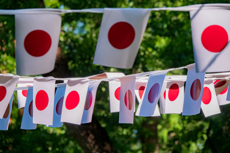 Japanese flags drape over an alley, infusing a traditional touch into the urban fabric, a blend of old and new