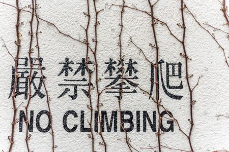 No Climbing English and Chinese word on wall