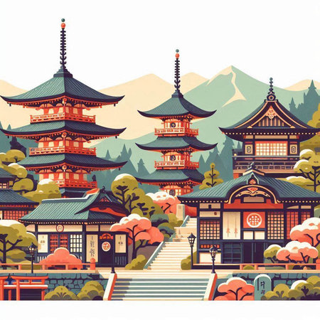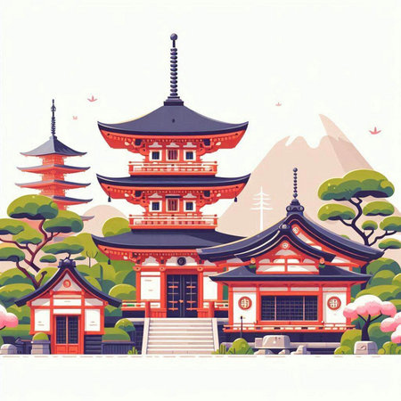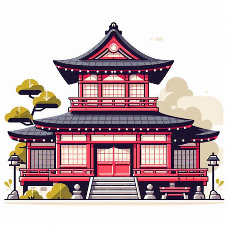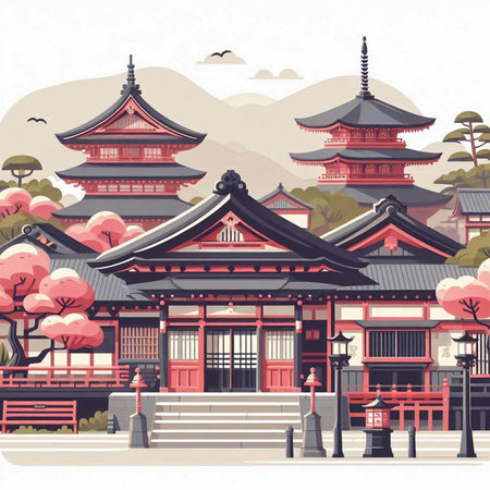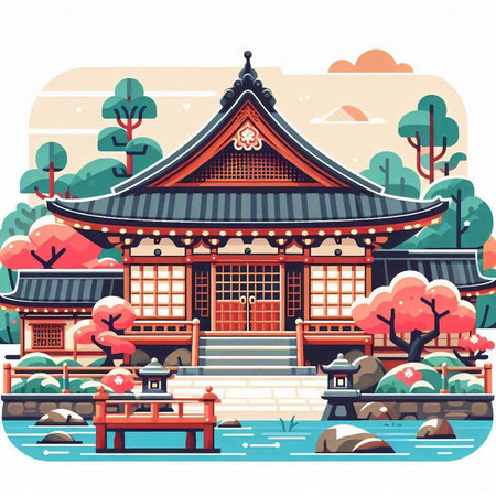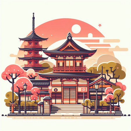 Japanese temple vector illustration in flat style. Traditional japanese architecture.