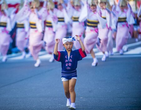 TOKYO - AUG 26 : Participants in the Awa Odori festival in Tokyo, Japan on August 26 2018. Awa Odori is the largest dance festival in Japan