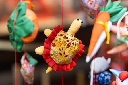 Japanese scenery Hanging ornamental dolls in front of the gate decorated for the Doll's Festival called Hina Matsuri, which is a festival to pray for the growth of girls.