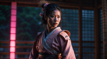 shot of a woman wearing traditional japanese clothing, created with generative ai