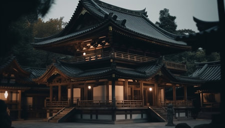 The ancient pagoda illuminates the night, showcasing East Asian culture generated by artificial intelligence