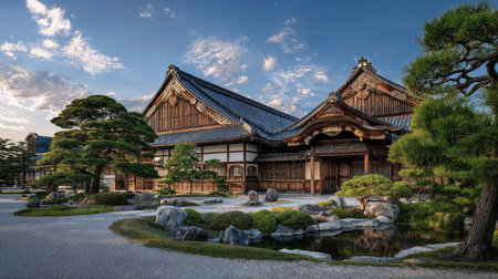 Nijo castle in Kyoto, Japan, where refined traditional architecture and lush gardens evoke a timeless samurai legacy ideal for cultural, travel, and creative projects.
