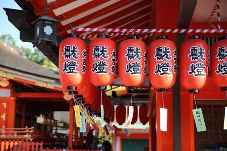 KYOTO, JAPAN - MAY 18: Lanterns in temple on May 18, 2013 in Kyoto. Former imperial capital of Japan for more than one thousand years, it has the name of City of Ten Thousand Shrines.