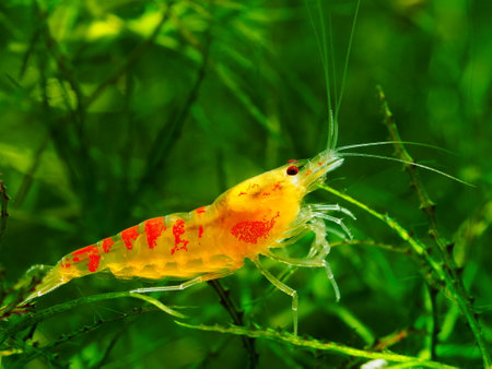 Red crystal shrimp (Caridina cantonensis) in freshwater aquarium