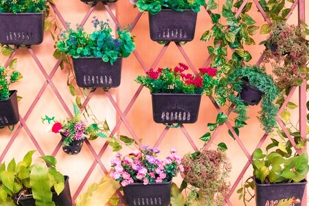 plant growing vertically in vertical garden. vegetable planted in small space pot on wall