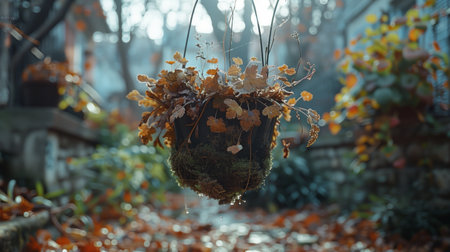 Generative AI : Old vintage flower pot with brown cup at outdoor