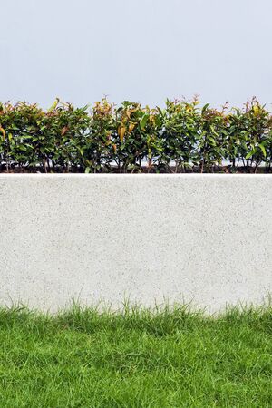 Stone wall and flora with grass in Garden Decoration design for modern building