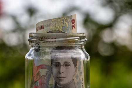 Ukrainian five hundred banknots in the jar on black background. Default concept