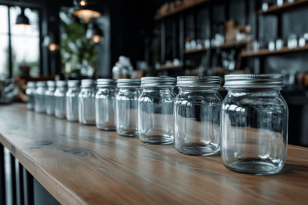 Empty glass jars on the table in row