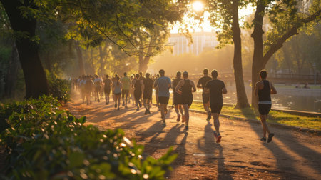 A group of people jogging in the park in the morning on a sunny day embodies the spirit of fitness and healthy living