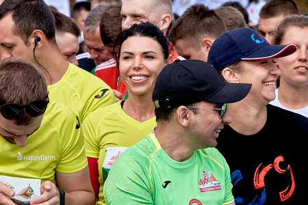 September 15, 2018 Minsk Belarus Half Marathon Minsk 2019 A tall young athlete stands among the marathon runners before the start