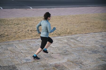 Young woman enjoying in a healthy lifestyle while jogging along a country road, exercise and fitness concept