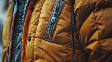 Close up of men's winter jacket. Selective focus