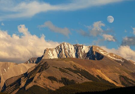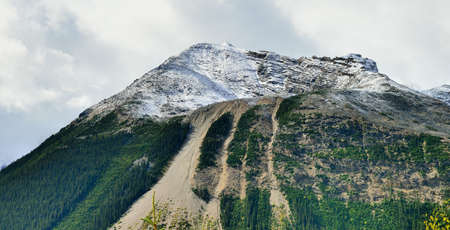 High mountains of the Canadian Rockies along the Icefields Parkway between Banff and Jasper