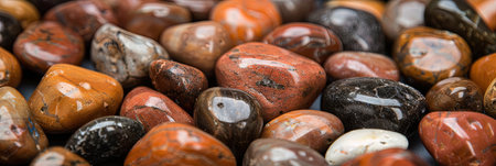 A close up shot of polished rocks and stones of different colors. A colorful collection and background texture for design and decoration