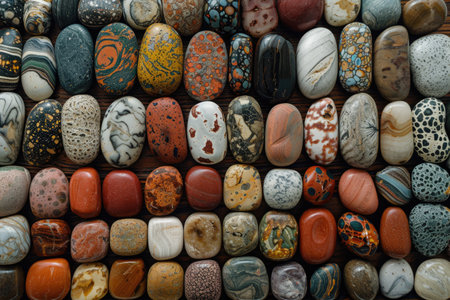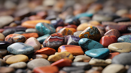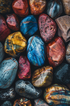 A stunning collection of smooth, rounded pebbles in various colors, showcasing natural beauty and texture. Ideal for artistic and decorative applications.