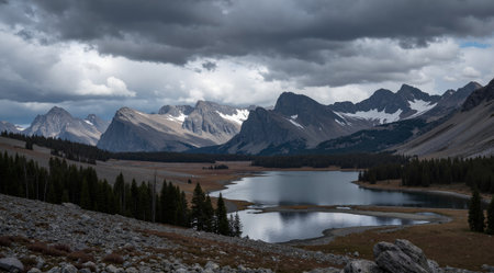 A moody sky over a mountain range in Kananaskis Country, Alberta, Canada